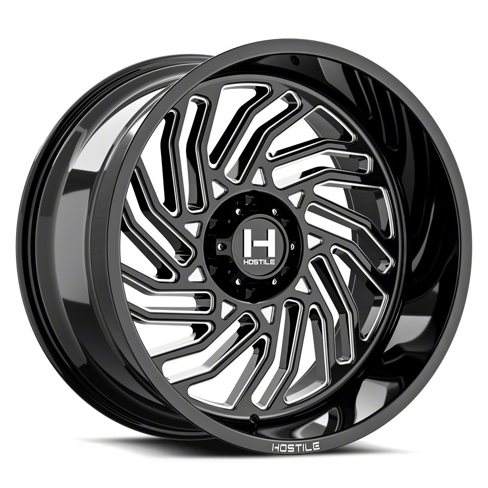 The 20x9 Hostile Twister Blade Cut 6-Lug Wheel is completed in a high-quality gloss black finish with steel milled accents for an aggressive appearance. For added protection and good looks, there is a durable clear coat that withstands the rigors of everyday driving.
