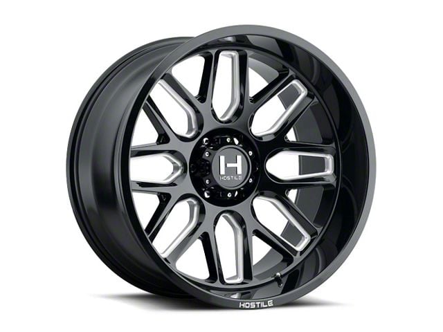 The 20x10 Hostile Vulcan Blade Cut 6-Lug Wheel is completed in a high-quality gloss black finish with steel milled accents for an aggressive appearance. For added protection and good looks, there is a durable clear coat that withstands the rigors of everyday driving.