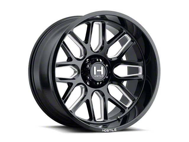 The 24x12 Hostile Vulcan Blade Cut 6-Lug Wheel is completed in a high-quality gloss black finish with steel milled accents for an aggressive appearance. For added protection and good looks, there is a durable clear coat that withstands the rigors of everyday driving.