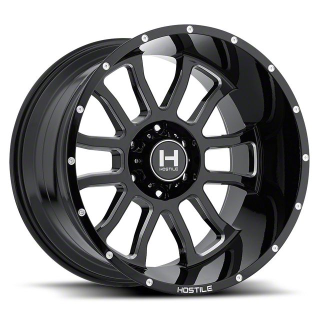 This 20x10 Hostile Gauntlet Blade Cut Wheel is completed in a high-quality gloss black finish with steel milled accents that will be the envy of everyone. There's a durable clear coat that protects against driving hazards.One-Piece Cast Aluminum Construction. This wheel is manufactured using gravity casting. Gravity casting is the process of pouring a molten aluminum alloy into a wheel mold or form utilizing the earth's own gravity to help fill the mold. The result is a strong, durable wheel that has the same good looks as a more expensive wheel, at a fraction of the price.