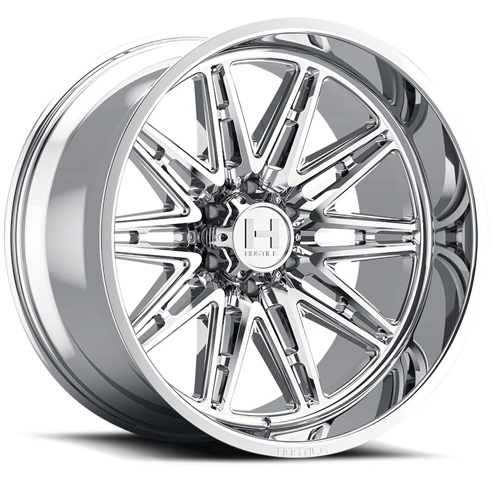 The 20x9 Hostile Maniac Armor Plated Wheel is completed in a high-quality chrome finish that is accomplished in a 3-step plating process. First layer is copper, which creates a smooth foundation. Next is nickel for hardness and durability. Finally, chrome for brightness.