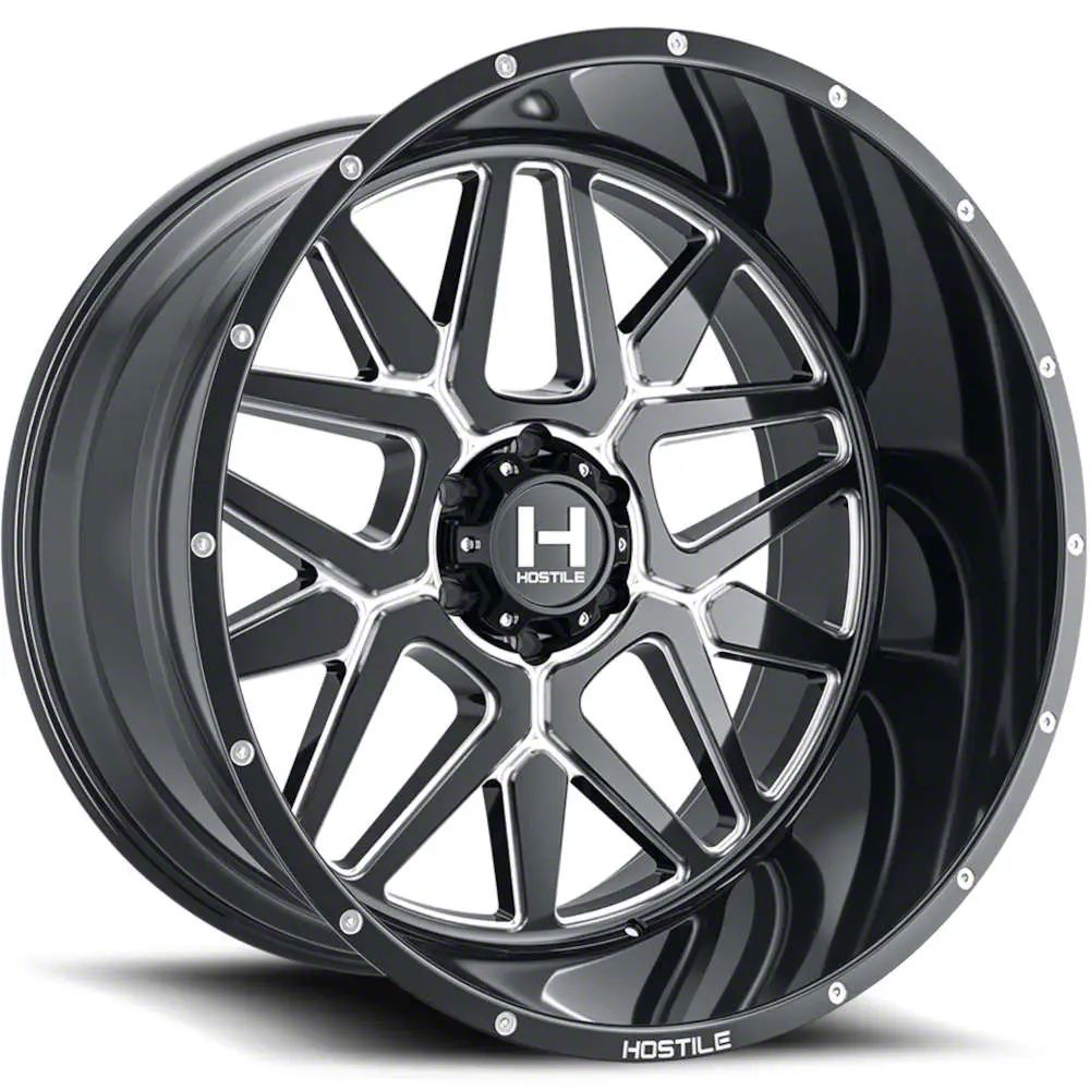 This 20x12 Hostile Diablo Blade Cut Wheel is completed in a high-quality gloss black finish with steel milled accents that will be the envy of everyone. There's a durable clear coat that protects against driving hazards.One-Piece Cast Aluminum Construction. This wheel is manufactured using gravity casting. Gravity casting is the process of pouring a molten aluminum alloy into a wheel mold or form utilizing the earth's own gravity to help fill the mold. The result is a strong, durable wheel that has the same good looks as a more expensive wheel, at a fraction of the price.