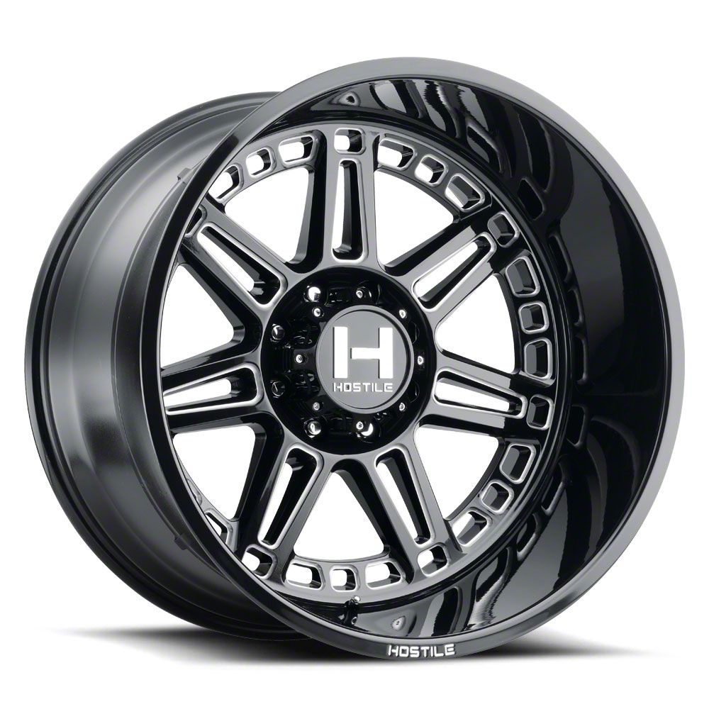 This 20x10 Hostile Lunatic Blade Cut Wheel is completed in a high-quality gloss black finish with steel milled accents that will be the envy of everyone. There's a durable clear coat that protects against driving hazards.
