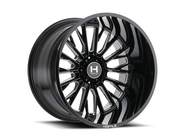 The 20x12 Hostile Fury Blade Cut 5-Lug Wheel is completed in a high-quality gloss black finish with steel milled accents for an aggressive appearance. For added protection and good looks, there is a durable clear coat that withstands the rigors of everyday driving.