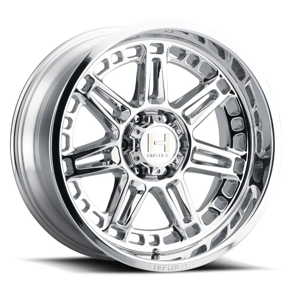The 22x10 Hostile Lunatic Armor Plated 6-Lug Wheel is completed in a high-quality chrome finish that is accomplished in a 3-step plating process. First layer is copper, which creates a smooth foundation. Next is nickel for hardness and durability. Finally, chrome for brightness.