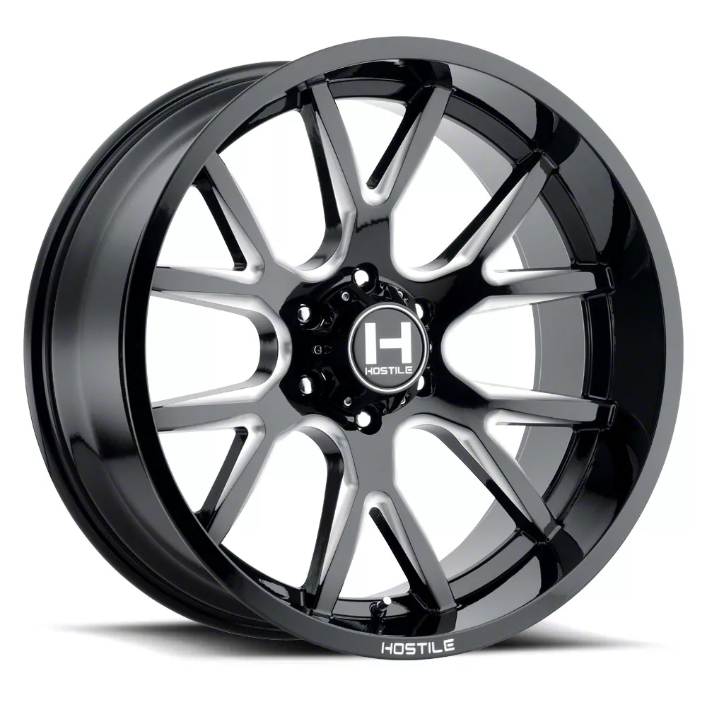 The 20x10 Hostile Rage Blade Cut 5-Lug Wheel is completed in a high-quality gloss black finish with steel milled accents for an aggressive appearance. For added protection and good looks, there is a durable clear coat that withstands the rigors of everyday driving.
