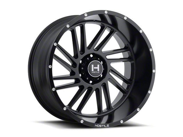 Hostile Stryker Asphalt 6-Lug Wheel; 24x14; -76mm Offset offers a sleek and assertive aesthetic that enhances a vehicle's visual presence. Its gloss black finish amplifies the appeal, making it a great match for bold styling themes. This wheel brings a refined edge to any build while maintaining a confident stance on the road. Crafted to elevate the appearance of a wide range of vehicles.