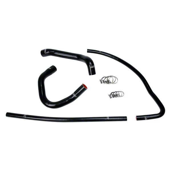 Construction and Appearance. Crafted from high-strength silicone, the hoses feature a matte black finish that adds a sleek, performance-focused appearance to your engine bay. Each hose is manufactured with the correct bends and curves to match OEM specifications, ensuring a precise fit. The kit includes 100% stainless steel industrial-grade hose clamps for a secure, corrosion-resistant seal in even the most demanding conditions.