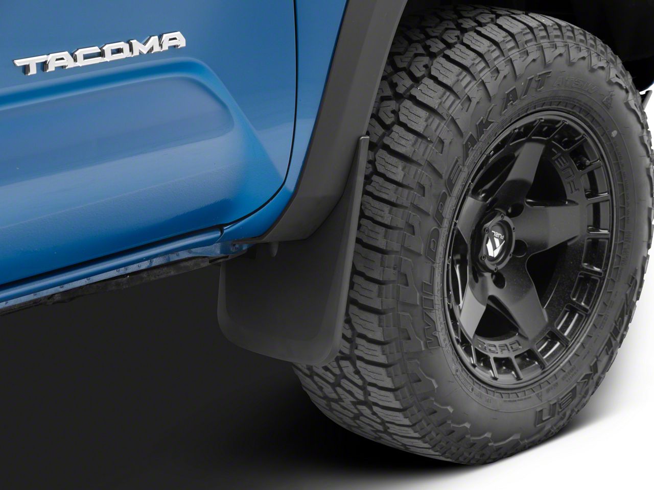 Application. Husky Custom Molded Front Mud Guards fit all 2016 to 2023 Toyota Tacoma models with OE fender flares.