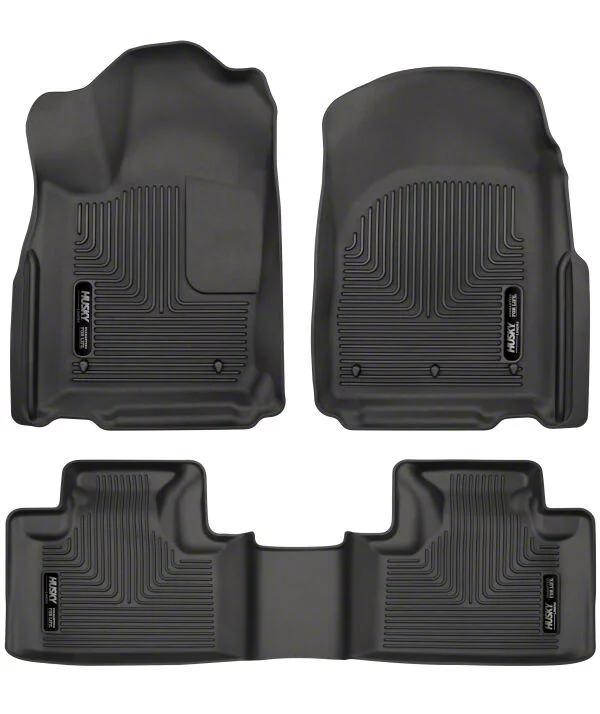 Easier Cleaning. Preserve the interior of your Jeep Grand with the Husky Liners WeatherBeater Front and Second Seat Floor Liners; Black. The ridges and grooves in the design work to trap and hold spills and debris, while the raised edges prevent liquids from seeping onto the carpet. Constructed with durable, patented rubberized material, these floor liners are resilient and long-lasting. They resist most chemicals and provide a tough defense against mud, snow, water, and other debris that could damage your vehicle's carpet.