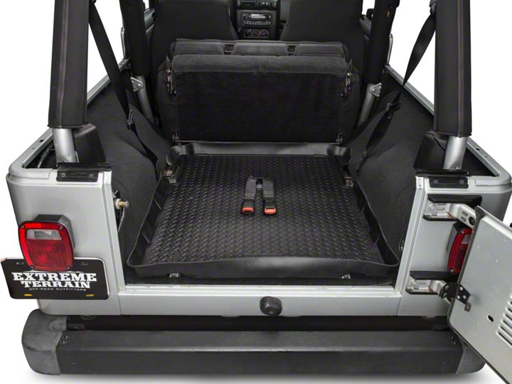 The Husky Classic Cargo liner can be used with or without the rear seat in place. The seat must be flipped forward to complete the instillation. On the 2005 Wrangler Unlimited used for this instillation the seat is released by lifting up on the handle in the middle of the back of the seat. It can then be flipped forward.