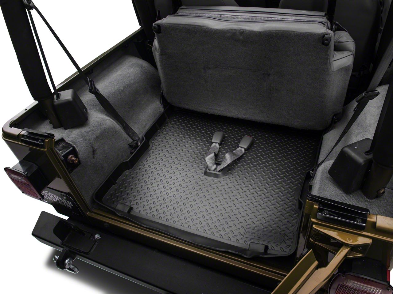 Function. This Jeep Wrangler rear cargo liner protects your vehicle's floor from liquid spills, gasoline, oil and other damaging elements. It extends under the rear seat to provide complete coverage.