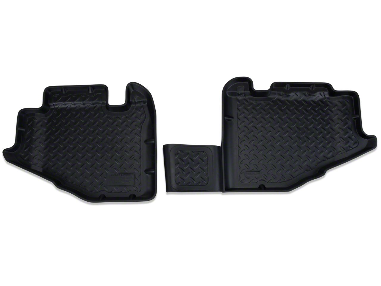 Construction. This rear floor liner from Husky is a practical solution to keeping your interior clean. These liners are constructed out of Husky's patented rubberized material and features a diamond plate finish in a tray-like design. This liner will protect your Jeep's floor from mud, spills, and other elements, and will look stylish while doing so.