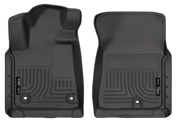 Excellent Coverage. Get amazing interior coverage with Husky's WeatherBeater Front Floor Liners; Black in your Tundra. The 2 black liners are custom fit to your truck through a laser scanning process, with a patented Form-fit Edge for excellent carpet coverage and a finished look. The durable liner keeps your carpet from being soiled by everything from mud to spilled gasoline. Ridges and grooves in the hearty rubberized liners catch everyday messes and resist most chemicals, too.