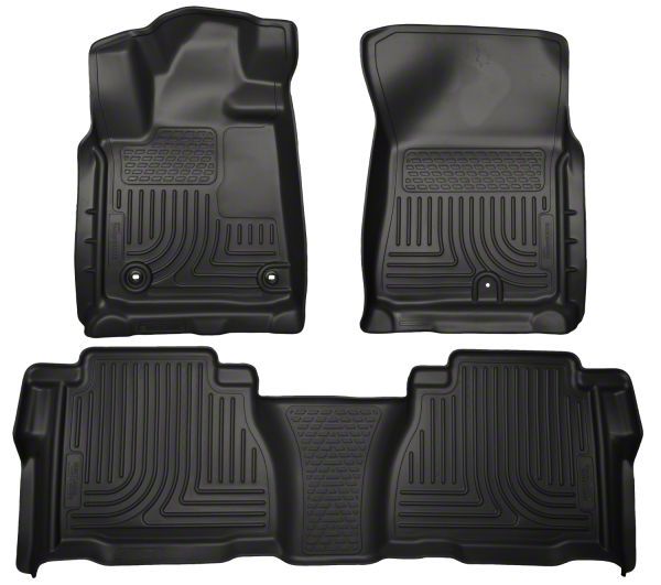 Application. Husky's WeatherBeater Front and Second Seat Floor Liners; Black fit 2012-2013 Tundra Double Cab and CrewMax models.
