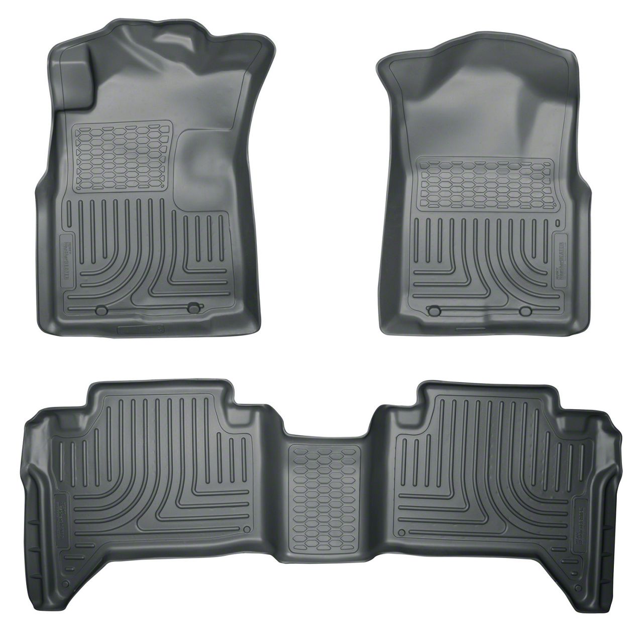 Application. These gray Husky WeatherBeater Front And 2nd Seat Floor Liners with Footwell Coverage will fit all 2005-2015 Toyota Tacoma with Double Cab models.