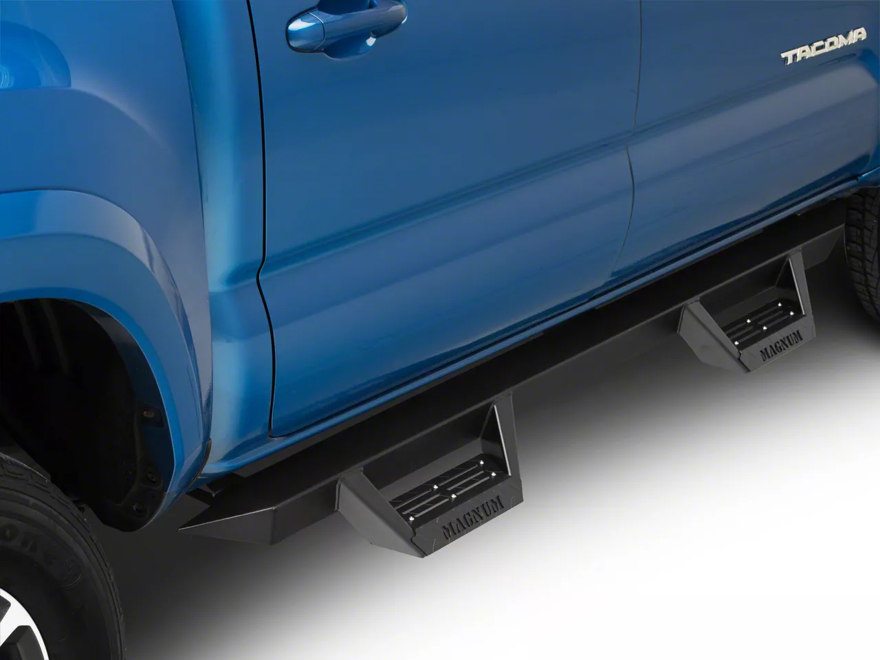 Defend and Support. Bringing your 2005-2023 Toyota Tacoma to the work site means that you’re going to be able to get the job done. However, making sure you can get in and out easy is very important, so equip your Tacoma with these ICI Magnum RT Cab Length Side Step Bars in black. They’re going to defend your Tacoma from the rigors of the job site, and on the way home, protect its cabin from pebbles and other road problems.