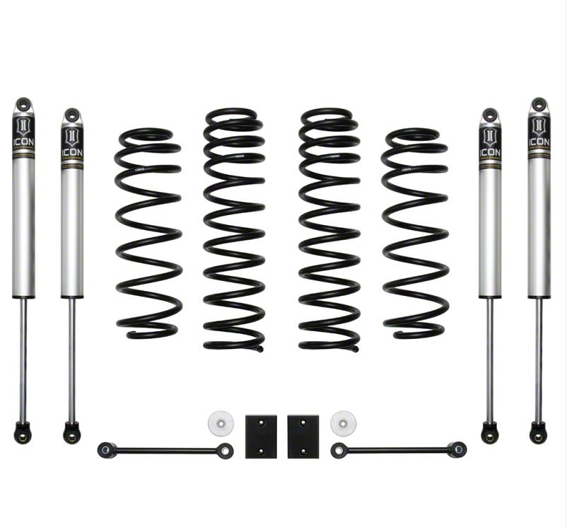 Better Off-Road Performance. Maximize your Jeep’s off-road performance with this Stage 1 ICON Vehicle Dynamics 2.50-inch Suspension Lift System. This suspension lift adds 2.50 inches of lift height, resulting in better ground clearance. So no matter what obstacles you may encounter, your Jeep can safely pass through them without damaging your undercarriage. Additionally, this suspension lift helps increase your wheel travel numbers by over 30 percent. Get this suspension lift system for your Jeep, and experience top-notch protection and performance in a single package.