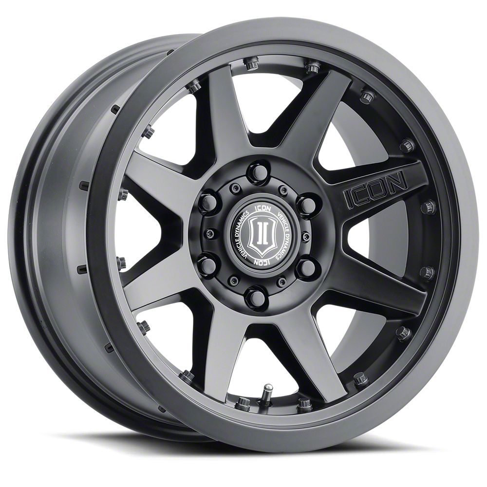 The 17x8.5 ICON Alloys Rebound Pro Satin Black 6-Lug Wheel features a high quality, satin black finish for an aggressive appearance that will be the envy of everyone.
