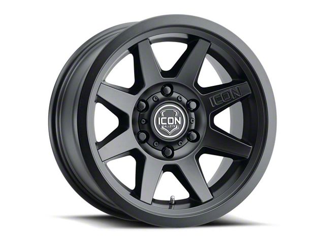 ICON Alloys Rebound Double Black 6-Lug Wheel; 18x9; 25mm Offset - Experience the sleek elegance of the ICON Alloys wheel. Its matte black finish adds a touch of sophistication to your vehicle, enhancing its overall appearance without compromising on durability. Perfect for a variety of vehicle styles, this wheel is a testament to the brand's commitment to quality and aesthetic excellence.