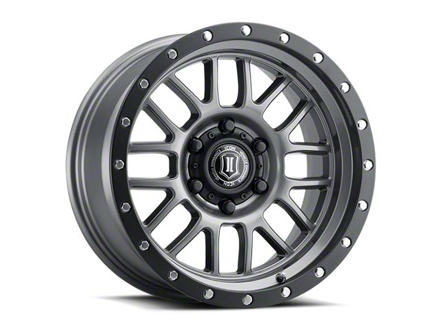 ICON Alloys Alpha Titanium 6-Lug Wheel; 17x8.5; 0mm Offset - Experience the sleek elegance of the ICON Alloys wheel. Its matte black finish adds a touch of sophistication to your vehicle, enhancing its overall appearance without compromising on durability. Perfect for a variety of vehicle styles, this wheel is a testament to the brand's commitment to quality and aesthetic excellence.