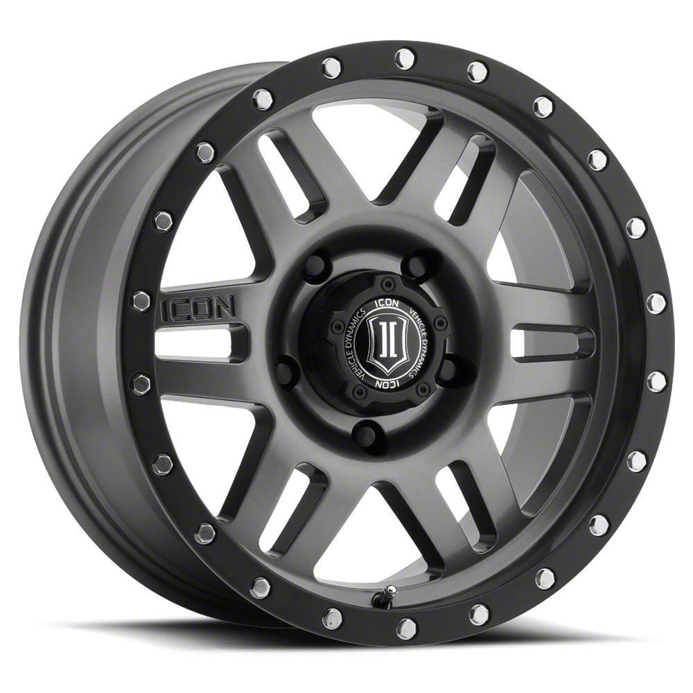 ICON Alloys Six Speed Gunmetal 5-Lug Wheel; 17x8.5; 25mm Offset exudes sophistication with its finish, offering a sleek and modern appeal to any vehicle it adorns. The design is meticulously crafted to enhance the aesthetic of your vehicle, giving it a distinctive and upscale look. Perfect for those seeking to elevate their vehicle's style, this wheel blends seamlessly with both contemporary and classic vehicle designs, making it a versatile choice for a wide range of vehicles. Its robust construction ensures durability, making it a reliable choice for drivers who value both style and quality.