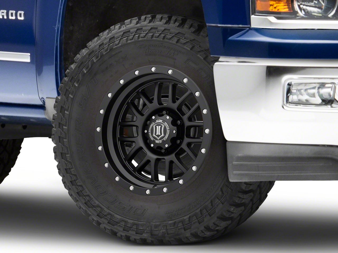 The 17x8.5 ICON Alloys Alpha Satin Black 6-Lug Wheel is completed in a high-quality satin black finish, which looks great. Thanks to a durable clear coat, the finish also protects against the rigors of driving.