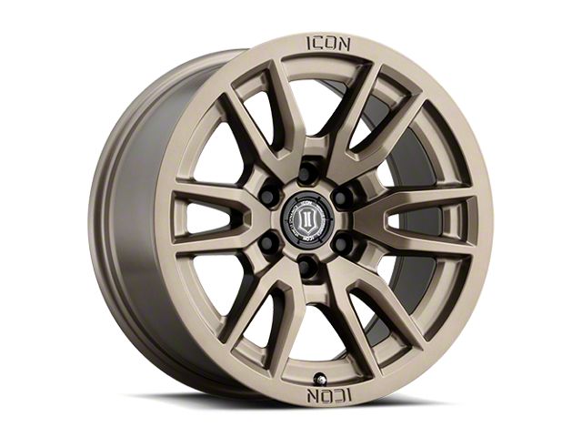 This 17x8.5 ICON Alloys Vector 6 Bronze 6-Lug Wheel; 17x8.5; 0mm Offset is completed in a high-quality bronze finish that will be the envy of everyone. For added protection and looks, there is a clear coat designed to handle whatever the road, or beyond, throws at it.