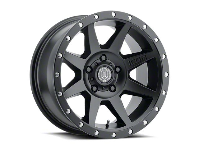 This 17x8.5 ICON Alloys Rebound Satin Black Wheel is completed in a high quality satin black finish for an aggressive appearance that will make others green with envy. A durable clear coat that withstands the rigors of driving.