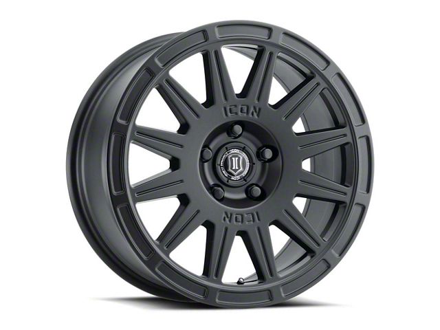 The 17x8 ICON Alloys Ricochet Satin Black Wheel is completed in a high-quality satin black finish, which looks great. Thanks to a durable clear coat, the finish also protects against the rigors of driving.