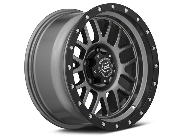 The 17x8.5 ICON Alloys Alpha Gunmetal Wheel is completed in a high quality, gunmetal gray finish for an aggressive appearance that will make everyone green with envy.