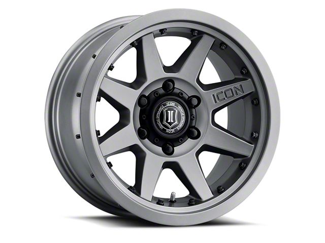 ICON Alloys Rebound Pro Titanium Wheel; 17x8.5 exudes a captivating aesthetic appeal that seamlessly complements various vehicle styles. The craftsmanship of ICON Alloys ensures a robust and premium feel, making it a standout choice for discerning drivers.
