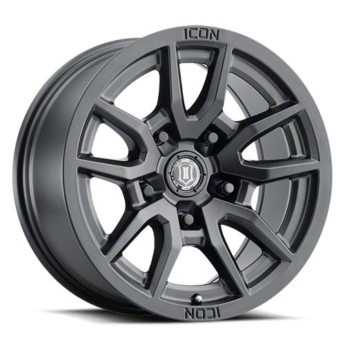 ICON Alloys Vector 5 Satin Black Wheel; 17x8.5 - Enhance your vehicle's style with the ICON Alloys wheel. This wheel's distinctive design and finish complement your vehicle's aesthetics, making a bold statement. It's crafted to accentuate the unique character of your car, emphasizing a premium and robust appeal.
