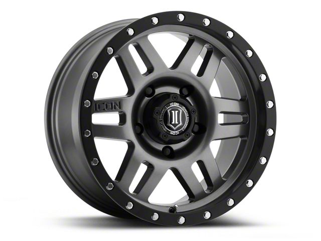 This 17x8.5 ICON Alloys Six Speed Gunmetal Wheel is completed in a high-quality gunmetal gray finish that looks sensational. There's a durable clear coat that protects the wheel from the hazards of driving.