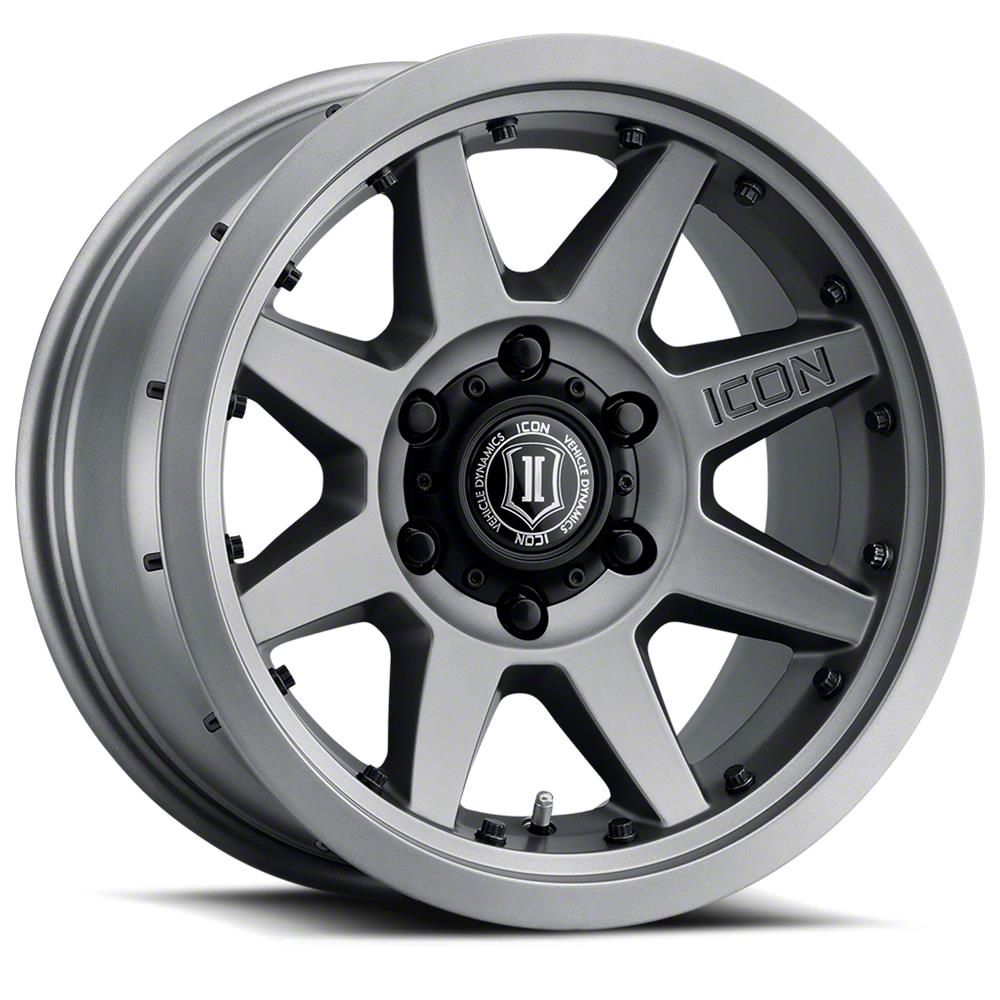 ICON Alloys Rebound Pro Titanium Wheel; 17x8.5: Redefine your vehicle's style with the ICON Alloys Rebound Pro Titanium Wheel. This wheel's elegant design and striking finish embody a blend of sophistication and boldness, perfectly complementing a wide array of vehicle aesthetics. Crafted from high-quality materials, it's a testament to durability and style.
