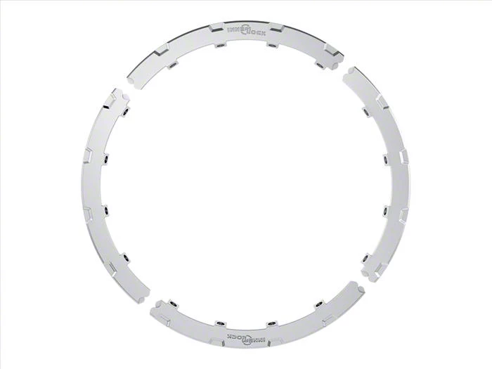 Construction and Appearance. Constructed from high-grade die-cast aluminum, the HALO Rock Ring features a raw aluminum finish ideal for custom color coatings. The multi-piece configuration allows for convenient replacement of individual sections, while the design utilizes your existing wheel hardware for seamless integration.