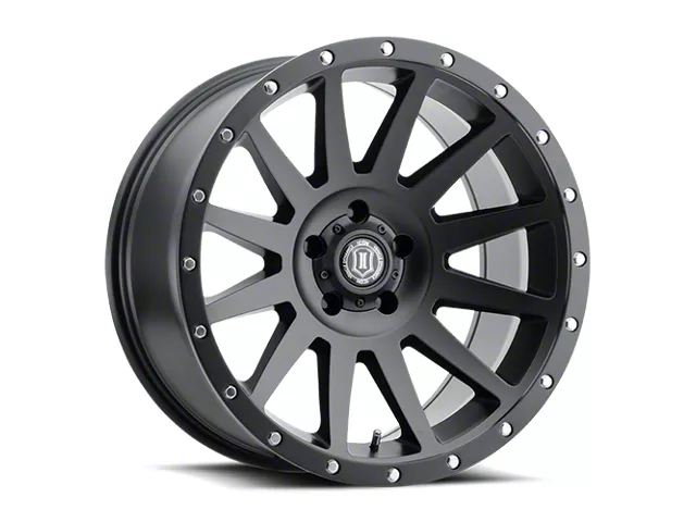 ICON Alloys Compression Satin Black 5-Lug Wheel; 20x10; -19mm Offset - This wheel's elegant design will certainly enhance your vehicle's aesthetic, complementing its luxury and performance. The unique styling of this wheel makes it an ideal choice for a standout quality of your ride, reflecting the premium quality associated with the ICON Alloys brand.