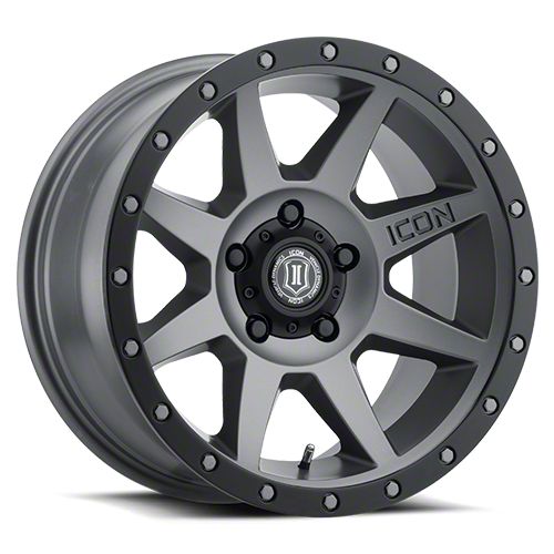 ICON Alloys Rebound Titanium 5-Lug Wheel; 18x9; 25mm Offset - Elevate your vehicle's style with this wheel's striking design. Reflecting the ICON Alloys' commitment to quality, it promises to add a touch of elegance and a strong character to your ride. Perfect for those seeking to make an impression without saying a word.