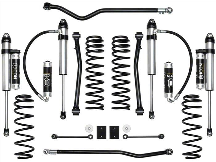 Unmatched Off-Road Performance. This ICON Vehicle Dynamics 2.50-Inch Suspension Lift System; Stage 5 readies your Jeep for grueling off-road conditions. It outfits your off-roader with durable components that help you conquer the trails with remarkable suspension articulation and smoother handling than ever. With this stage 5 lift system, your Jeep can crawl rocks or tackle high-speed desert adventures with remarkable ease.