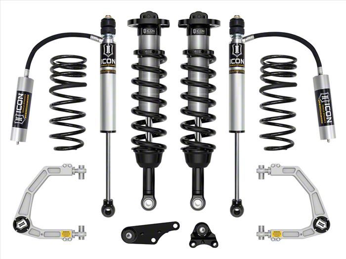 Billet Quality Lift System for Off-Road Capability. The ICON Vehicle Dynamics 1.25 to 3-Inch Suspension Lift System with Billet Upper Control Arms and Triple Rate Rear Springs offers a precise solution for enhancing your Tacoma's ground clearance and off-road handling. Designed for durability and performance, this lift system improves ride quality and stability in challenging terrains.