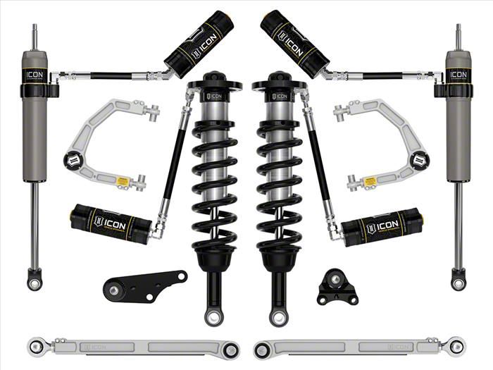 Billet Quality Lift System for Off-Road Capability. The ICON Vehicle Dynamics 1.25 to 3-Inch Suspension Lift System with Billet Upper Control Arms offers a precise solution for enhancing your 4WD Toyota Tacoma's ground clearance and off-road handling. Designed for durability and performance, this lift system improves ride quality and stability in challenging terrains.
