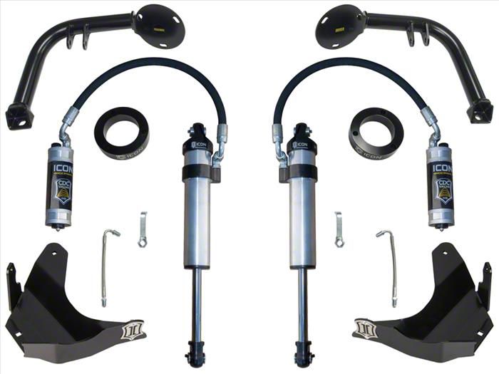 Extreme Off-Road Damping. Take your off-road performance to extreme new heights with the ICON Vehicle Dynamics S2 Secondary Shock Upgrade System; Stage 2. Certain off-road driving like long washboard trails and intense desert drives can sometimes prove too much for even the most advanced damper setup. This secondary shock upgrade system is engineered to assist your current ICON coilovers, enabling your truck to handle washboards and desert runs with ease. The secret is the included Aluminum CDCV series reservoir shocks that feature a nitrogen-charged monotube design and a remote reservoir. When combined with your setup, these shocks deliver superior off-road damping characterized by my exceptional handling control. On the highway, your new shock setup will deliver more stable handling with virtually no body roll. This way you don’t lose your truck’s daily drivability.