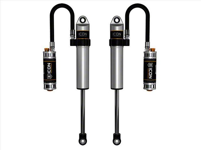Description. ICON Vehicle Specific (V.S.) 2.5 Aluminum Series shocks are designed and built to give your vehicle outstanding performance off-road and a smooth ride on the street. These shocks are configured specifically for each application in both length and damping tune. Like all ICON'S Shock Absorbers, V.S. 2.5 Aluminum Series shocks are 100% rebuildable and 100% revalveable. For piggyback and specific remote reservoir applications, ICON'S unique use of a 6061 billet aluminum manifold a few inches below the top cap of the shock creates an internal Bump Zone that when used creates an additional 20% of damping force. This additional force helps prevent harsh bottom outs and controls the suspension when compressing at high velocity. The ICON CDC Valve is an externally adjustable valve that restricts oil flow into the reservoir which creates 10 levels of compression damping force ranges. If you are looking for a more user defined tune, consider looking into the Omega Series bypass shocks.