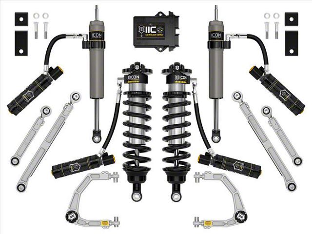 Full Control. Equipped with the ICON Intelligent Control (IIC), this allows for near-instant CDEV adjustments, giving you the ability to fine-tune your suspension on the fly. With the IIC CDEV Control App, you can easily make adjustments using your smartphone or tablet. It also has improved camber and caster adjustments, along with the replacement of the OE ball joint to provide better alignment and steering control. Its Sway bar drop brackets also help to maintain proper suspension geometry.
