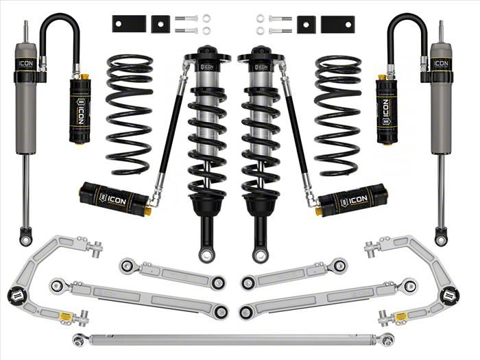 High-Performance Lift System. The ICON Vehicle Dynamics TRD Suspension Lift System delivers top-tier suspension performance and adjustability for the 2022–2026 Toyota Tundra. This Stage 11 kit is engineered for aggressive off-road capability, enhanced ride quality, and improved handling, offering an adjustable lift range of 1.25 to 3.50 inches while accommodating tires up to 35 inches in diameter.