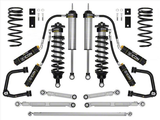Advanced Suspension System. The ICON Vehicle Dynamics 2 to 3.25-Inch 3.0 TRD Suspension Lift System enhances your vehicle's performance both on and off-road. With a lift height of up to 3.25 inches and adjustable compression damping, this system is designed to improve alignment specs and support up to 35-inch tires.