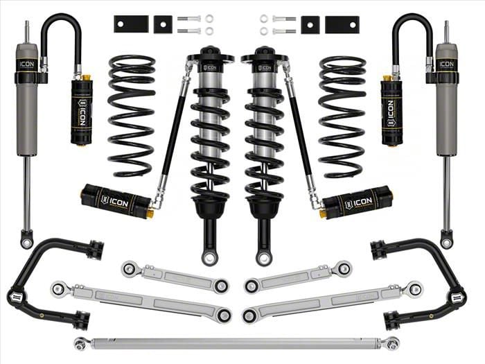 Enhanced Suspension Performance. The ICON Vehicle Dynamics 2 to 3.50-Inch TRD Suspension Lift System is designed to provide superior on- and off-road performance for your vehicle. This system allows for the fitment of up to 35-inch tires and yields maximum travel possible, offering up to a 40% increase over stock suspension.