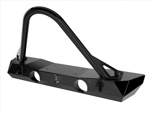 Bolder Off-Roading Capacity. Give your JK an aggressive off-roading stance by providing it with a tough and reliable front protection. This ICON Vehicle Dynamics Impact PRO Series Winch Front Bumper with Stinger comes in a faceted, high-clearance configuration to maximize approach angle. It features a rock crawling style Stinger to prevent your Jeep from tipping forward on steep descents or climbing over large obstacles. It also accommodates a winch with a top-mount location for easy access to the drum while keeping the winch away from the mud and rocks.
