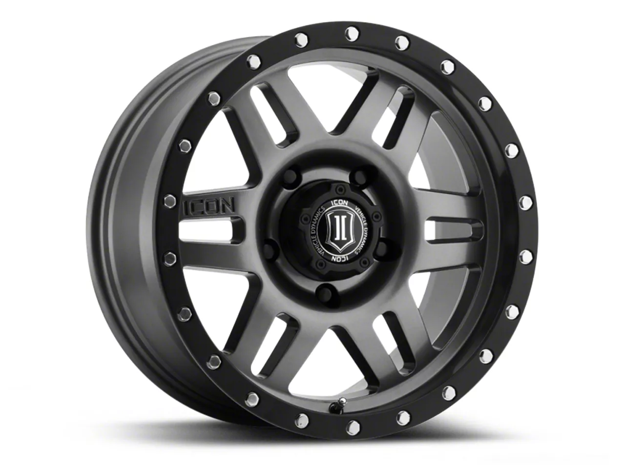 The 17x8.5 ICON Alloys Six Speed Gunmetal Wheel is completed in a high-quality gunmetal gray finish, which looks great. Thanks to a durable clear coat, the finish also protects against the rigors of driving.