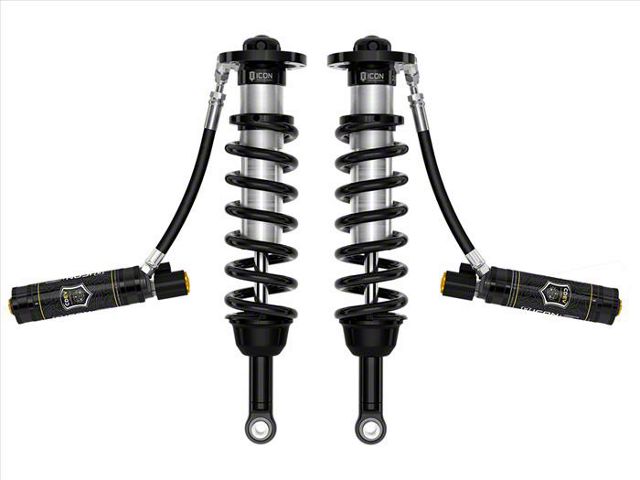 Enhanced Suspension Performance With On-The-Fly Adjustments. The ICON Vehicle Dynamics V.S. 2.5 Series Front Remote Reservoir Coil-Over Kit with CDEV offers an adjustable 1.25 to 3-inch lift for improved ground clearance. Its advanced CDEV technology allows on-the-fly compression damping adjustments for tailored performance in varying driving conditions.